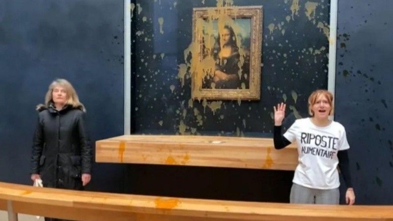 Dos activistas francesas pertenecientes al colectivo Riposte Alimentaire arrojaron sopa sobre «La Gioconda», la obra maestra de Leonardo da Vinci expuesta en el Museo del Louvre cuyo lienzo original está protegido por un cristal, por lo que no llegó a sufrir daños