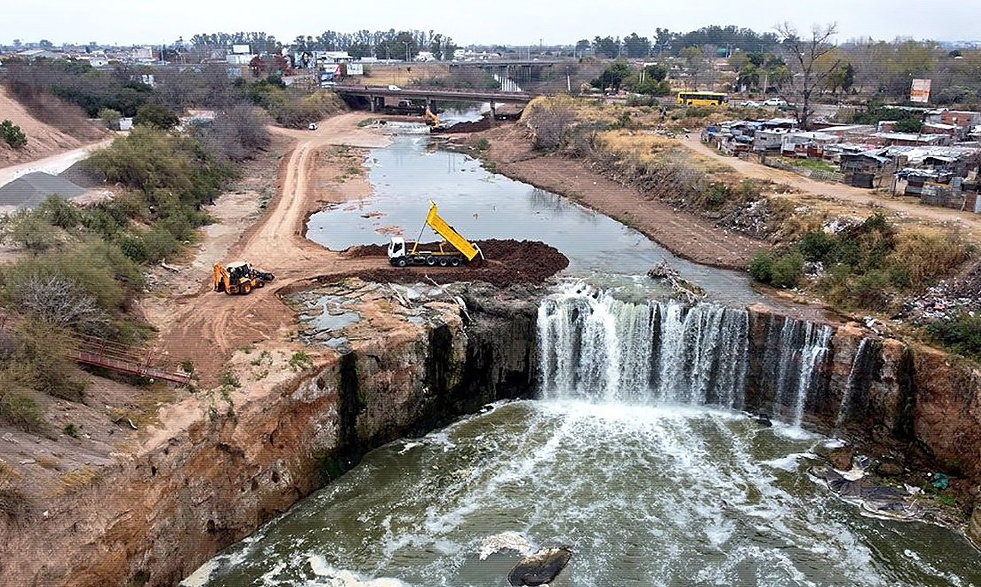 “El retroceso de la cascada hacía que se vaya corriendo, que llegue a la zona de puente de Molino Blanco y que lo pudiera afectar en su circulación. Por eso la urgencia en hacer esa obra, que es una especie de, para explicarlo, de la cascada quede fija a través de una obra rígida, fuerte, grande, de hormigón, para que no siga corriendo hacia atrás la cascada” explicó Enrico.