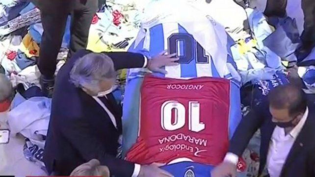 El presidente de la Nación saludó a los deudos y luego depositó una camiseta de Argentinos Juniors y dos pañuelos de las Madres.