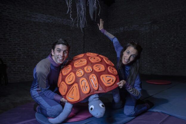 La pedagoga italiana María Montessori profesaba que los objetos que pertenecen al mundo de los niños deben estar a su altura, a su alcance, para fomentar su autonomía y ayudarlos a desarrollar su independencia, su autocuidado. Y eso pasa en OTA, que tracciona a las infancias a acercarse al escenario -armado al nivel del piso y en el centro de una ronda al estilo jardín de infantes- queriendo acariciar a los personajes de la historia, porque todo está nivelado hacia la mirada de los peques, con juegos de colores y texturas propicias. Es una excelente puesta en escena donde se cuida cada detalle creativo dentro de la narración.